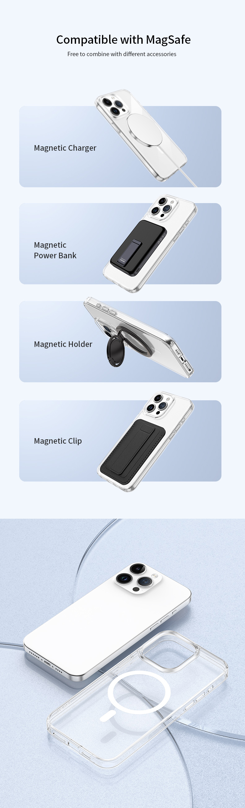 Built-in strong magnet precisely attaches your phone to compatible MagSafe Accessories.